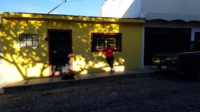 You have to really be careful while walking in Ajijic. The streets are cobblestones. The sidewalks are uneven, narrow, and broken in many places, with unexpected drop offs. Dogs are running loose everywhere. It would be very easy to step in a hole or in dog shit and I don’t know what’s worse. I scrupulously aimed to avoid both possibilities.