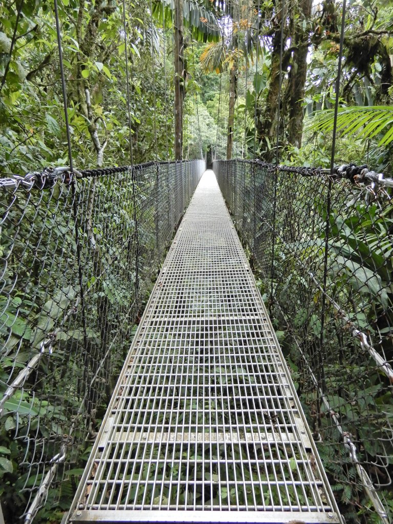 Greivin, our guide and driver for the day, picked us up a little before 2:00 and drove us to Mistico Park for the hanging bridges tour. There are ten static bridges, six hanging bridges, and one waterfall. We stopped along the way to take pictures in front of the magnificent Arenal Volcano. There are over 200 volcanic formations in Costa Rica with five of them considered active. Arenal is one that is considered active and is one of the most popular sites to visit in Costa Rica