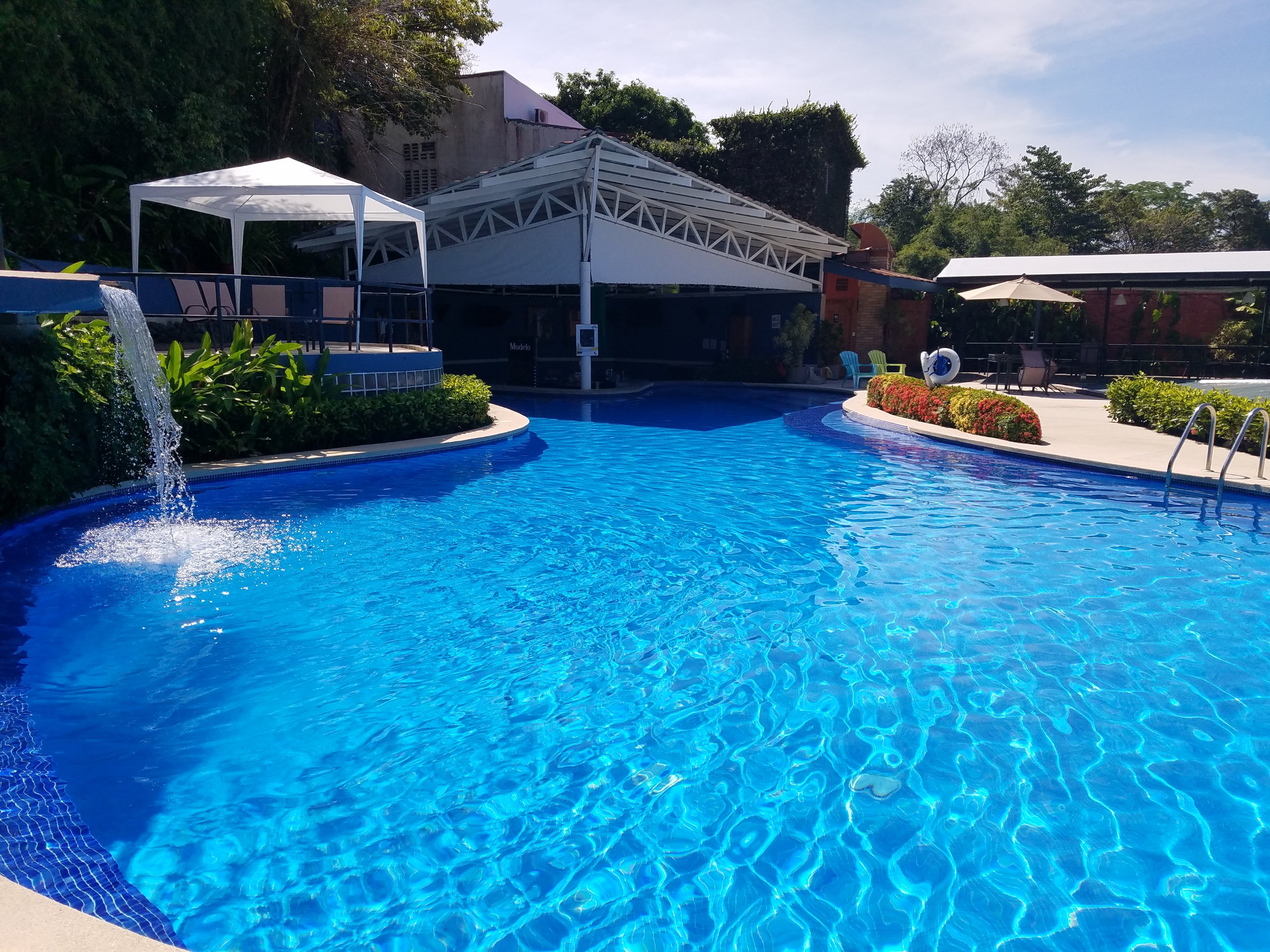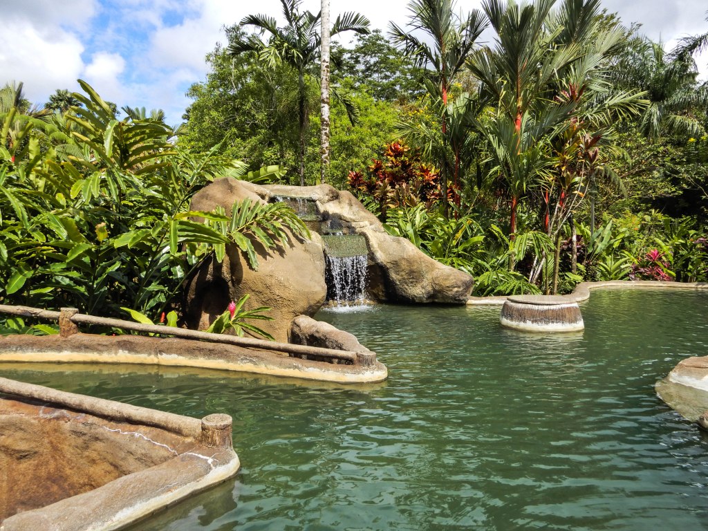 We got back on the road and shortly reached our destination at the Volcano Lodge and Thermal Springs. On the way we drove through the little town of La Fortuna which was near the lodge. It looked to have a variety of shops and restaurants and we made a mental note to come back for a visit while we were still in the area.