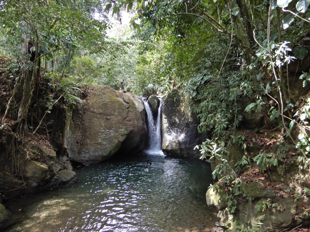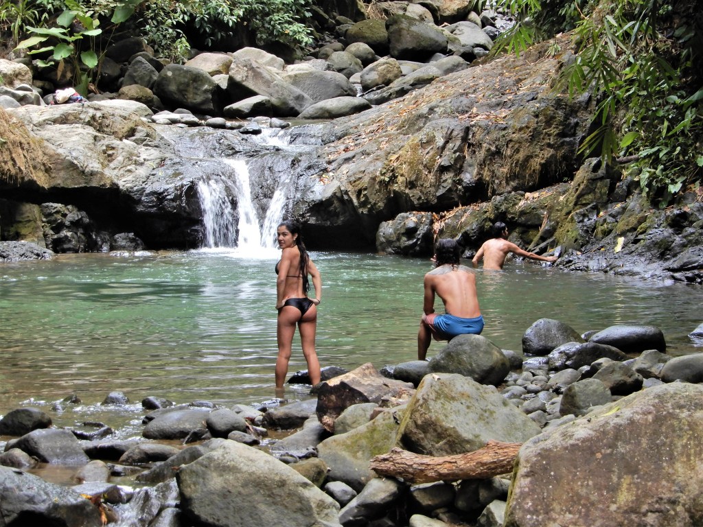 After lunch, we went to anther waterfall, called Cascada Del Pavon. We had to hike a way into the jungle to get to it. This waterfall featured a boulder that had rolled down the mountain millions of years ago and lodged between two larger boulders at the top of the waterfall dividing the stream. We took some pictures and hiked back out. Our next stop was the ocean!