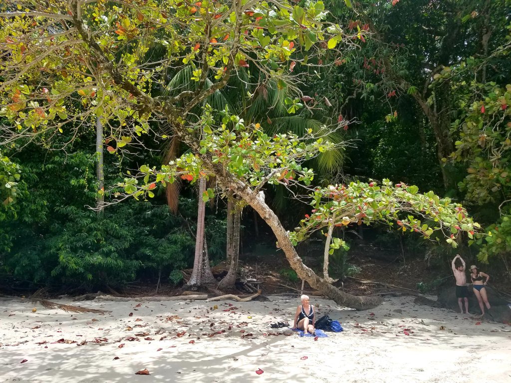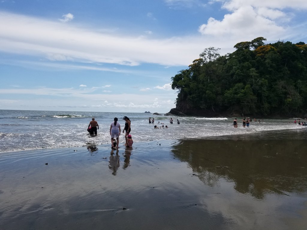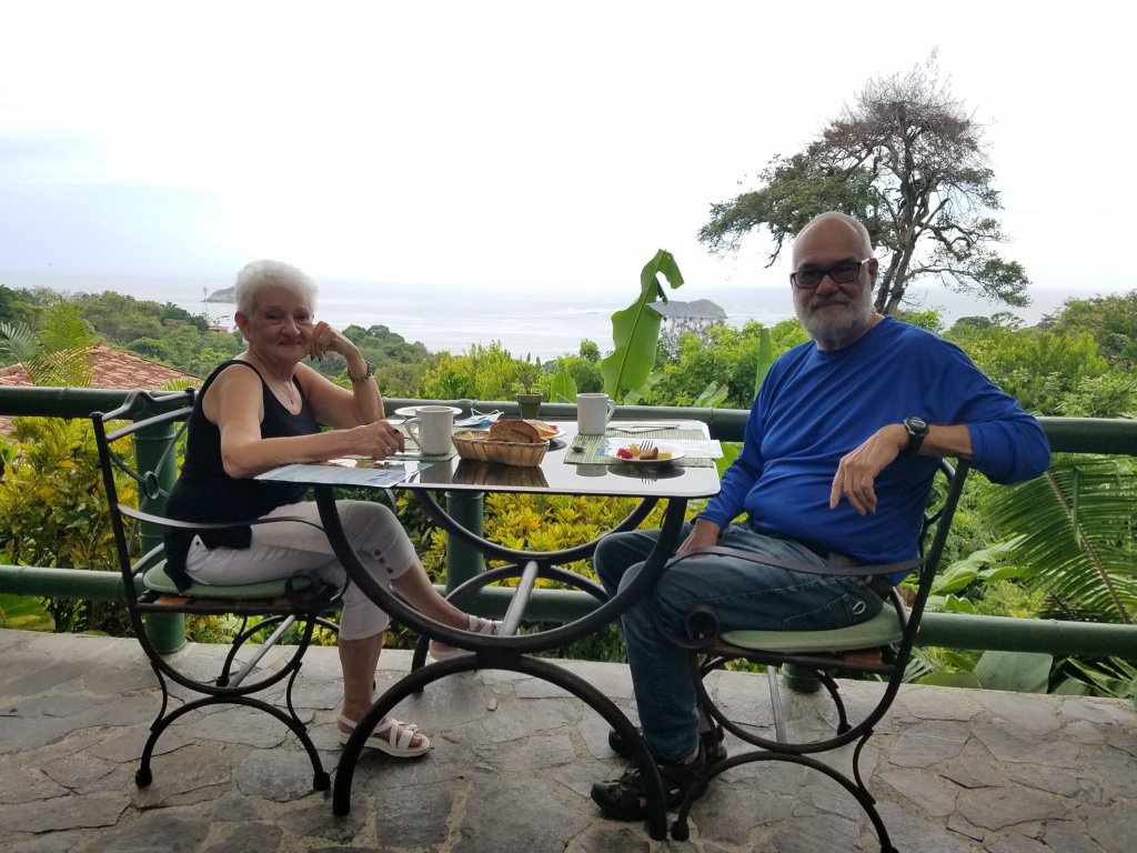 Breakfast at the Rico Tico Jungle Grill with a magnificent view of the Jungle and the ocean. Later we took a taxi to Manuel Antonio Park. Senor Luis was our driver. We had to pay an entry fee to get into the park but it was worth it. We walked two miles to the beach through the jungle. What a lovely secluded cove with very few people. Spent a couple of hours in the sun having fun in the ocean and on the beach. We walked back out and had lunch at one of the many restaurants just outside the park entrance. Once again, I had the typical Casado, this time with pork. Had two Imperial Beers to drink. Maureen had the nachos.