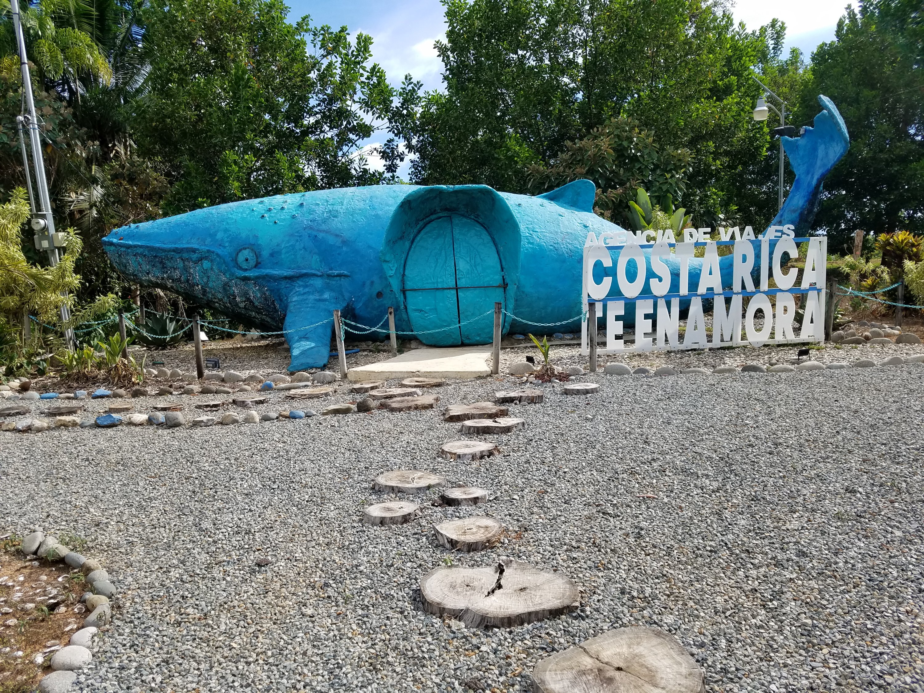 On the way back we made two stops for photo ops. One was of a Trex sculpture and one was for a sculpture of a Blue Whale in Uvita. Oh yes, we actually made a third stop to photograph one of the mysterious stone spheres that have been discovered in Costa Rica. No one knows where they come from, how they got there, or how they were made.