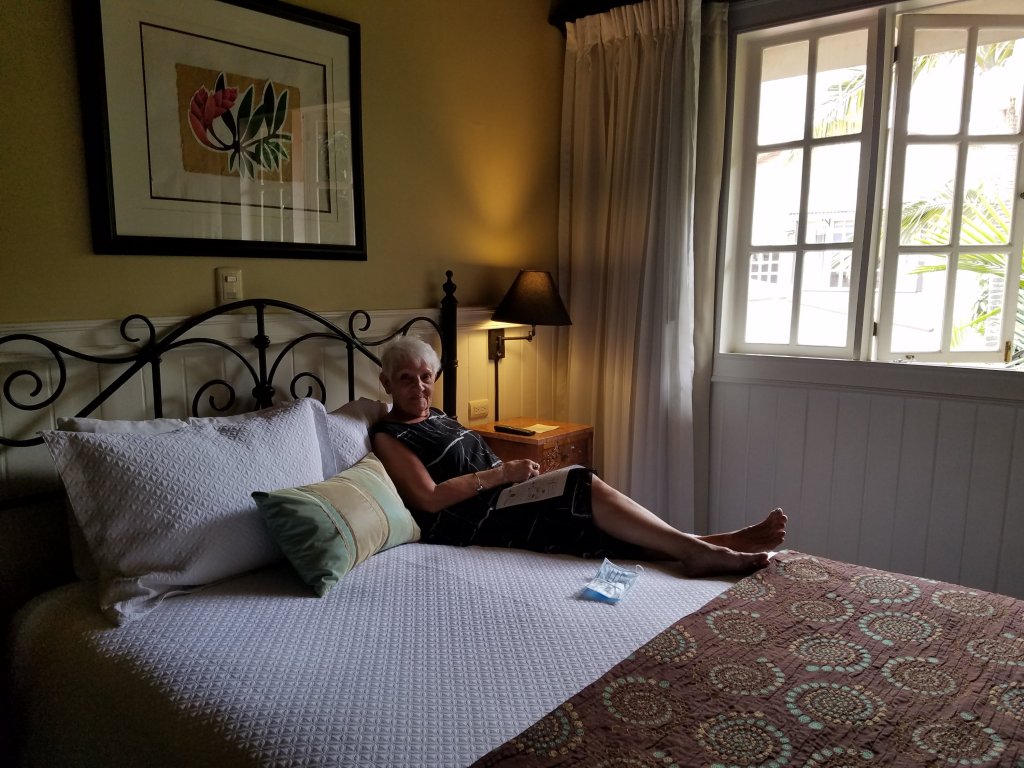 After we got settled in, we went out for dinner at the hotel restaurant, Claro Que Si and had an excellent meal. I had the Sauteed shrimp. To drink I had rum again. One straight on the rocks and then I switched up and tried another drink called Red Eyed Gin and Tonic. It was pretty good, but one was enough. Maureen had her customary Hendrick’s Gin and Tonic. Two in fact. We retired after that. Long day.